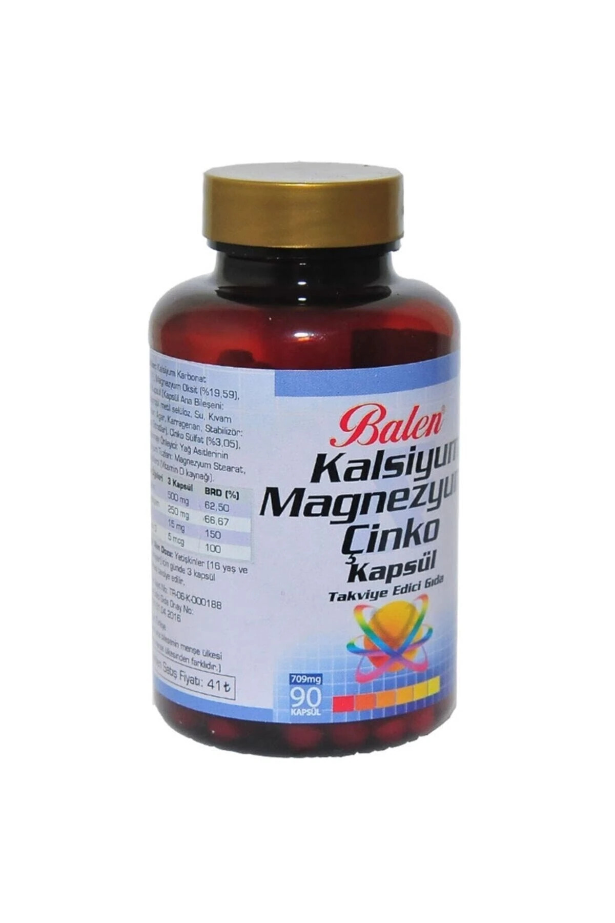 Kalsiyum&Magnezyum&Çinko Kapsül Takviye Edici Gıda709MG*90 KAPSÜLGünlük Alım Dozu: Yetişkinler (16 yaş ve üzeri bireyler) için günde 3 kapsül tüketilmesi tavsiye