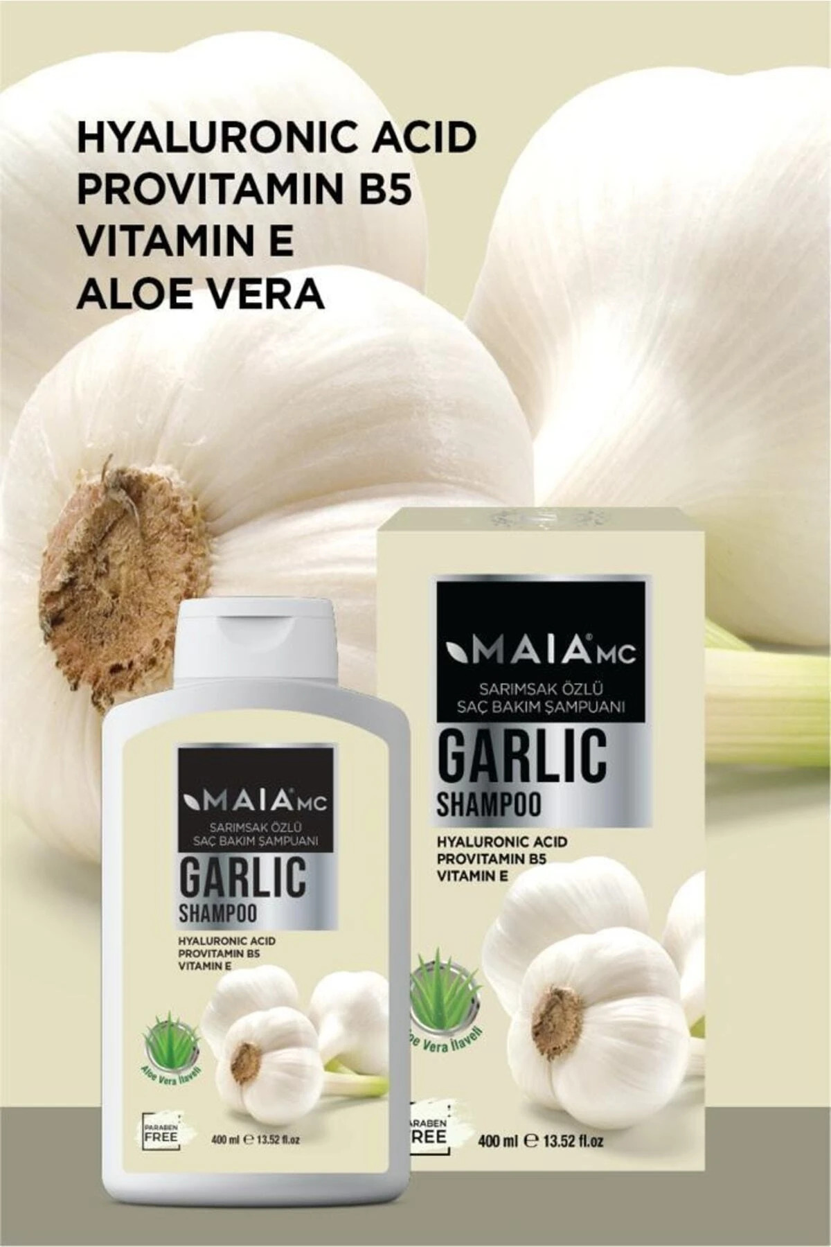 Sarımsak Şampuanı Aleo Vera İlaveli 400 ML Sarımsak özü içeriğindeki, vitamin, mineral ve eser elementler sayesinde saçların dolgunluk kazanmasına