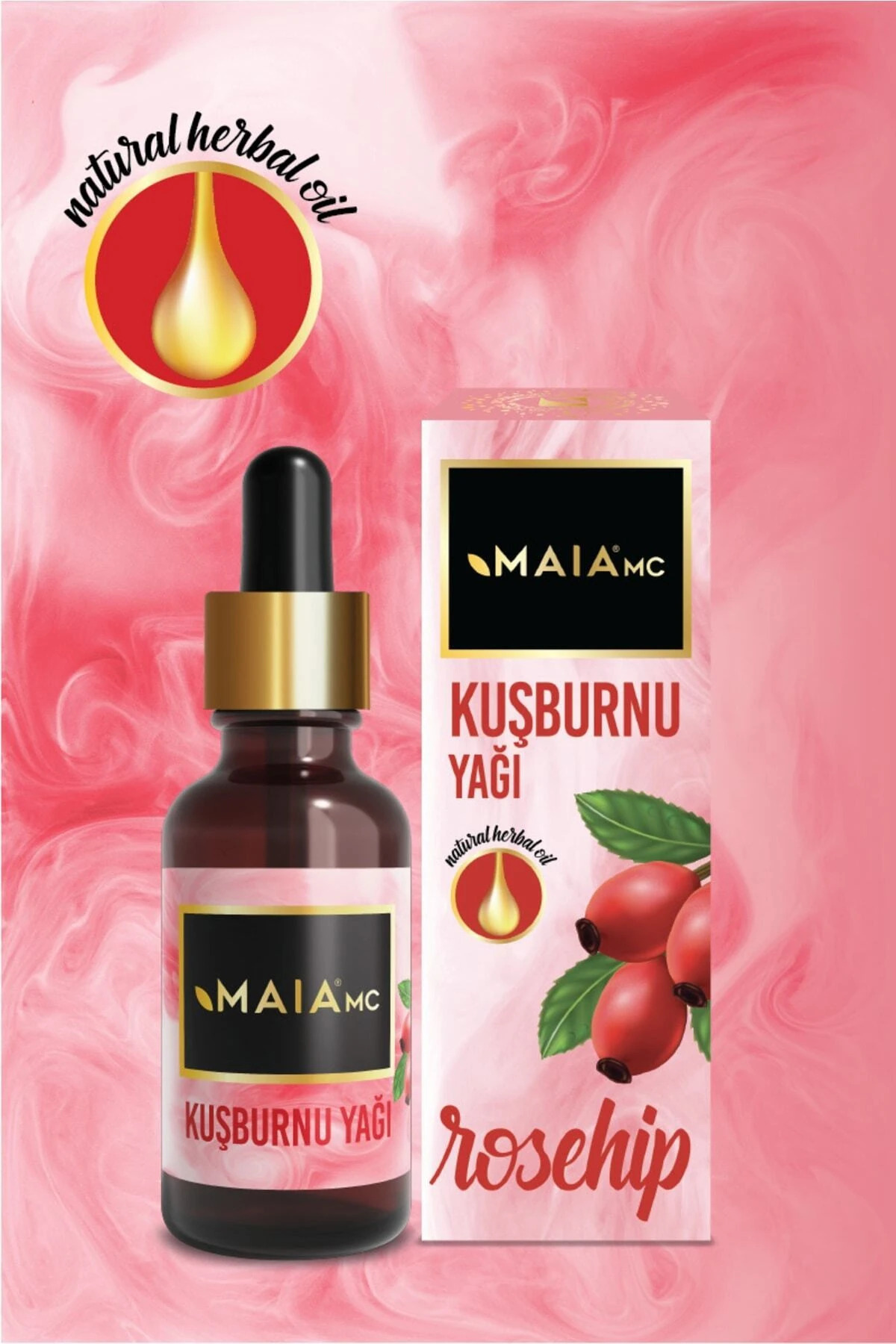 Kuşburnu çekirdeği ve bitkisel yağdan maserasyon yöntemiyle elde edilmiştir.