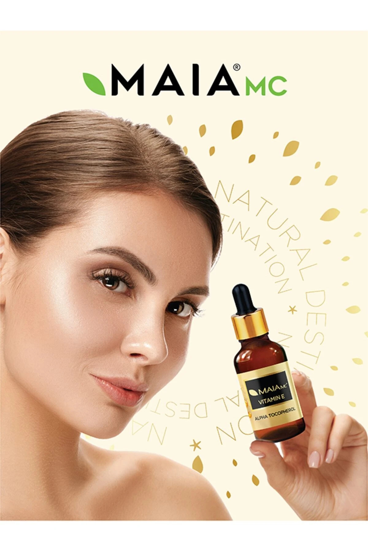 E vitamini, sağlıklı bir ciltte var olan bir bileşendir. Ciltte istenmeyen değişikliklere neden olan kirlilik, stres ve diğer çevresel faktörlerden korunması için önemli antioksidan etki sağlamaya yardımcı olur. E vitamini yağda çözünebilen bir antioksidandır ve insan vücudunda bulunan bir bileşendir. E vitamini hem ciltte hem de saçlarda derinlemesine bakım sağlamaya yardımcı olur. Maia Mc E vitamini serumu, ciltteki ince çizgi, kırışıklık görünümü ve sıkılık kaybını azaltmaya yardımcı olur. İçeriğinde bulunan yüksek oranda E vitamini özelliği ile cildin yenilenmesine ve canlanmasına yardımcı olduğu gibi saçların da yumuşak ve ipeksi, canlı görünerek hızlı ve sağlıklı uzamasını destekler. Hassas ciltler ve tüm saç tipleri dahil olmak üzere canlılığını, parlaklığını kaybetmiş, matlaşmış ve elastikiyet kaybı olan kişilerin kullanması tavsiye edilir. E vitamini ciltteki UV hasarlarını azaltmada da faydalıdır. Maia Mc E vitamini serumu; gece yatmadan, önceden temizlenmiş cilde dairesel hareketlerle ve masaj yöntemiyle uygulanması tavsiye edilir.