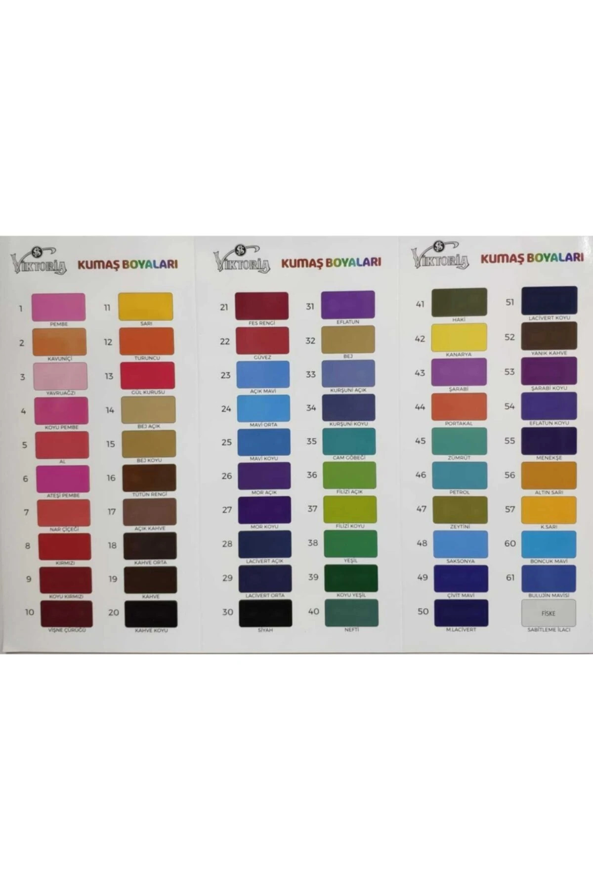 Viktoria toz kumaş boyaları, 10 gr boya 200 gr kuru halde tartılmış kumaşı boyayacak şekilde ölçeklenmiştir. Kumaşınızı tartarak net boya miktarını hesaplayabilirsiniz. Tahmin etmek gerekirse bir t-şort 200 gr, bir Jean pantolon ortalama 400 gr gelmektedir.